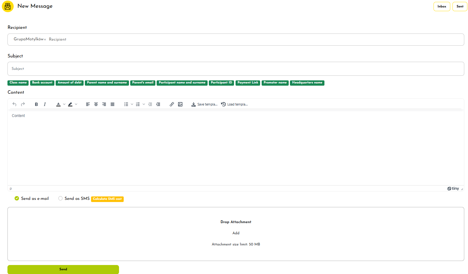 4. Fill in the message and send it.