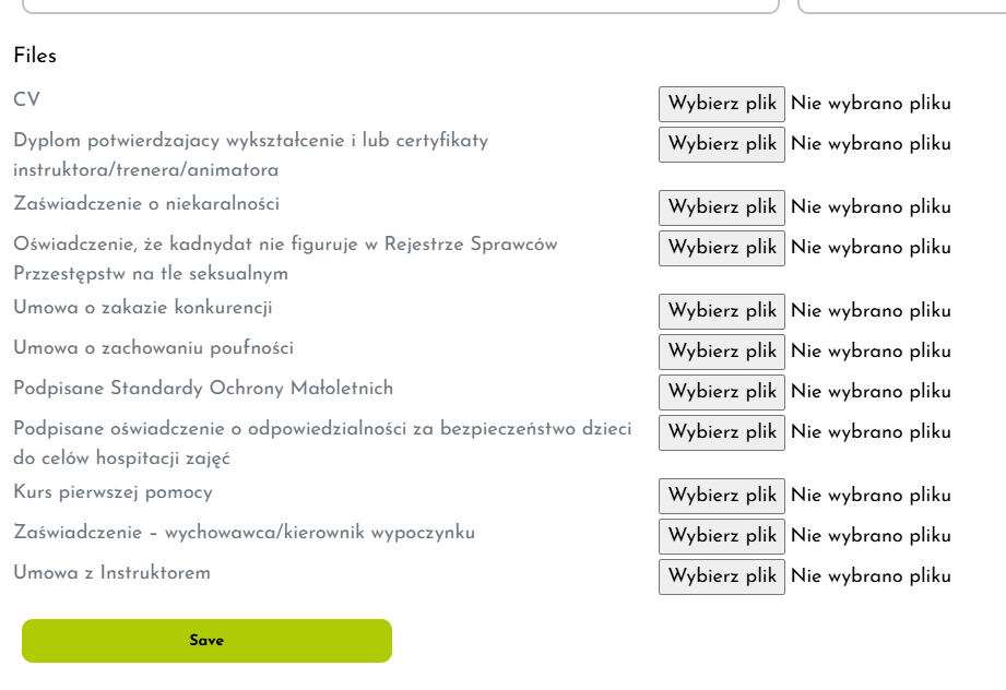 In the Mondo Infano system, it is possible to add documents related to instructor verification. These include, among others:
