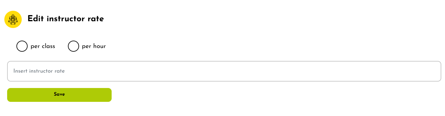 Each instructor can have a defined rate, which can be calculated per class or per hour.