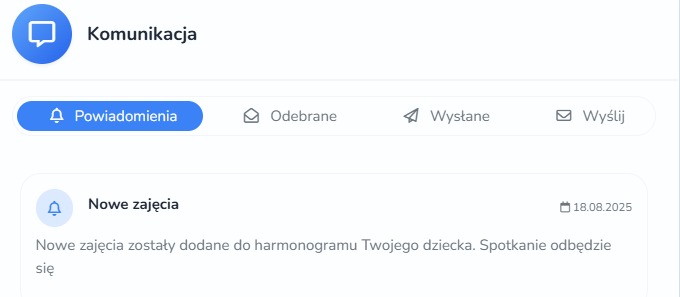 4. Wyświetlone zostaną wszystkie powiadomienia skierowane do rodzica.