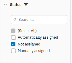 4. In the Status column, use the filter to select "Not assigned".